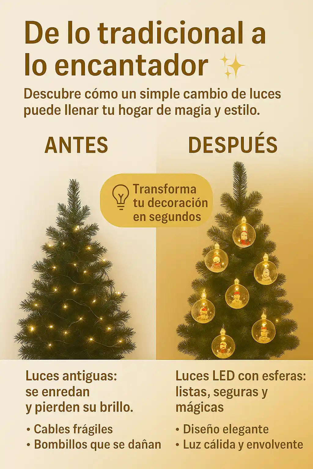 “Las esferas tienen un brillo cálido que hace que todo se vea acogedor. Mis vecinos ya me preguntaron dónde las compré.”